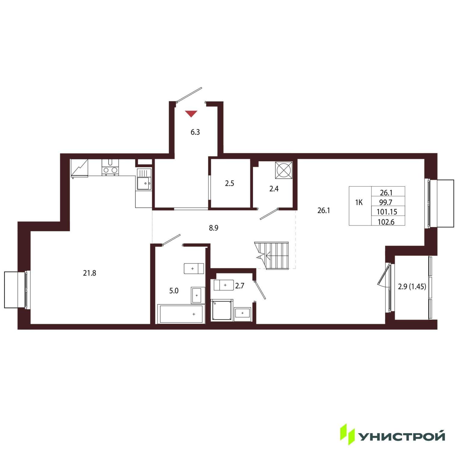 Однокомнатная квартира 101,15 м2 по ул. Сестрорецк Авиационная улица,1 за 33552000 руб. |