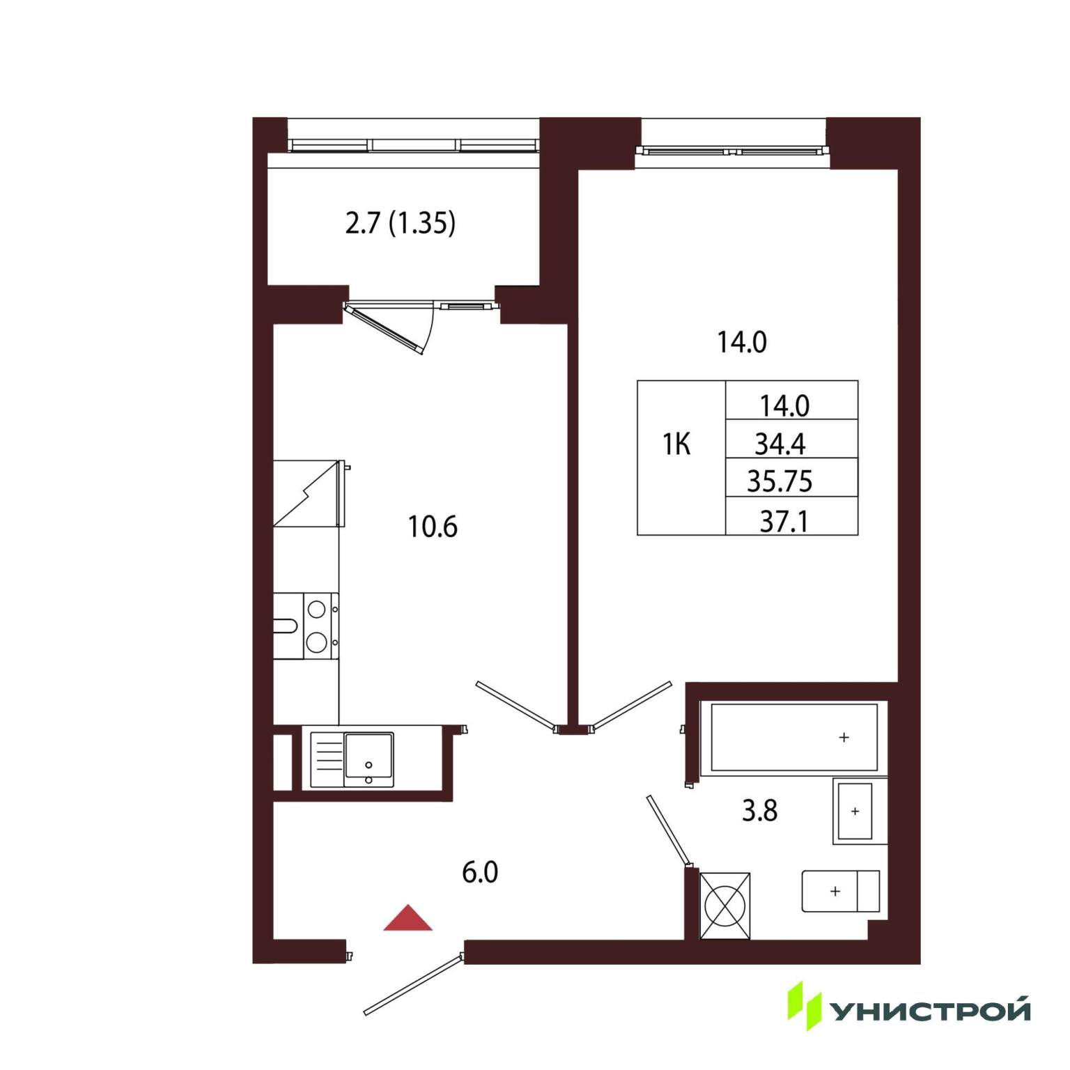 Однокомнатная квартира 35,75 м2 по ул. Сестрорецк Авиационная улица,1 за 11570000 руб. |