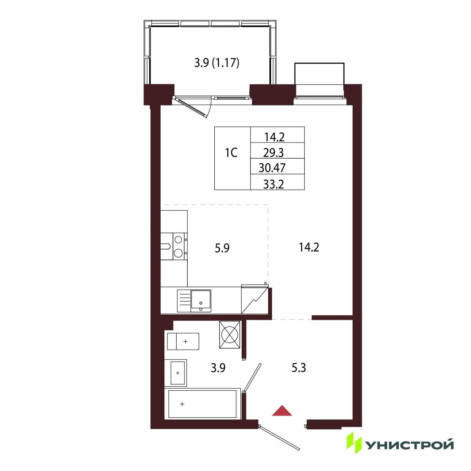 Однокомнатная квартира 30,47 м2 по ул. Сестрорецк Авиационная улица,1 за 10460000 руб. |