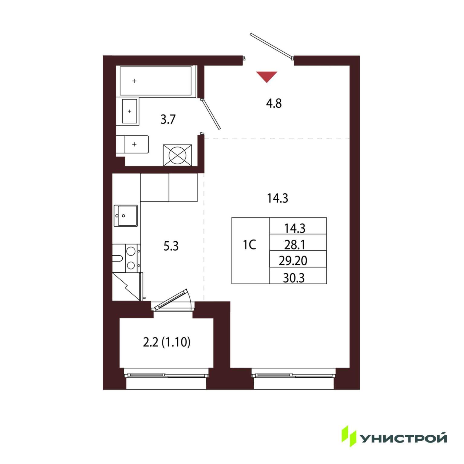 Однокомнатная квартира 29,20 м2 по ул. Сестрорецк Авиационная улица,1 за 9980000 руб. |
