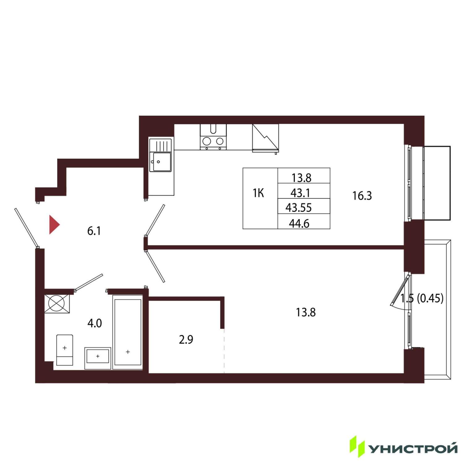 Однокомнатная квартира 43,55 м2 по ул. Сестрорецк Авиационная улица,1 за 14350000 руб. |