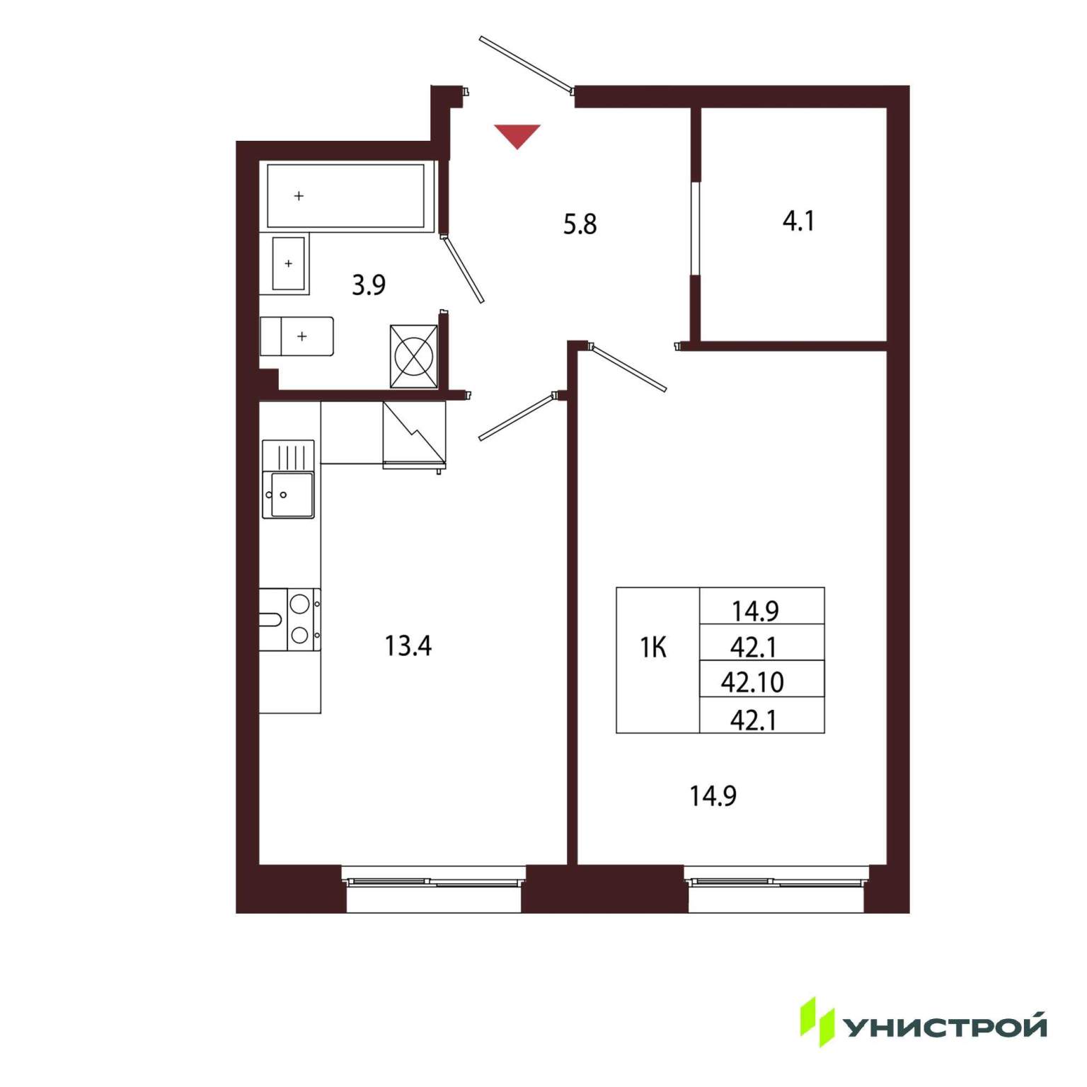Однокомнатная квартира 42,10 м2 по ул. Сестрорецк Авиационная улица,1 за 13650000 руб. |