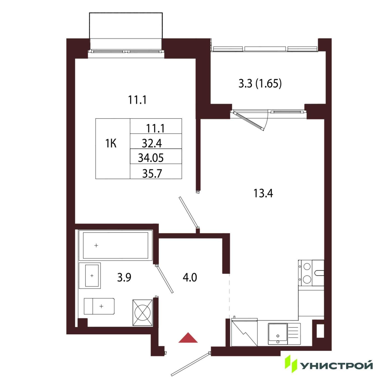 Однокомнатная квартира 34,05 м2 по ул. Сестрорецк Авиационная улица,1 за 11143000 руб. |