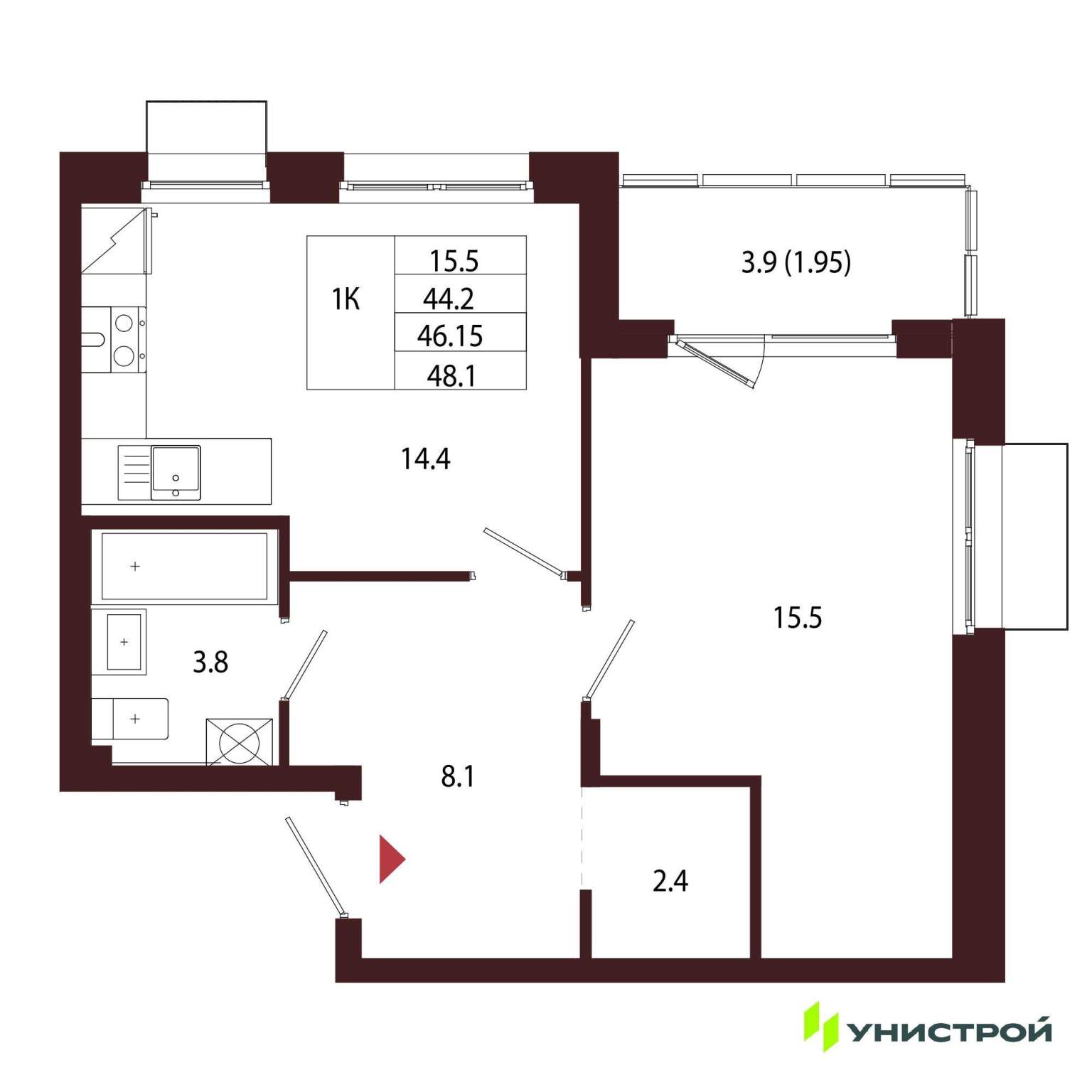 Однокомнатная квартира 46,15 м2 по ул. Сестрорецк Авиационная улица,1 за 15145000 руб. |