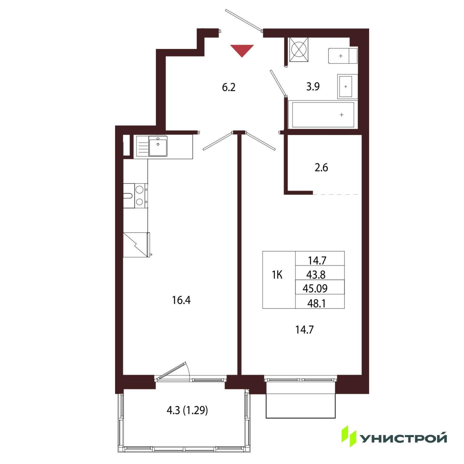 Однокомнатная квартира 45,09 м2 по ул. Сестрорецк Авиационная улица,1 за 14670000 руб. |