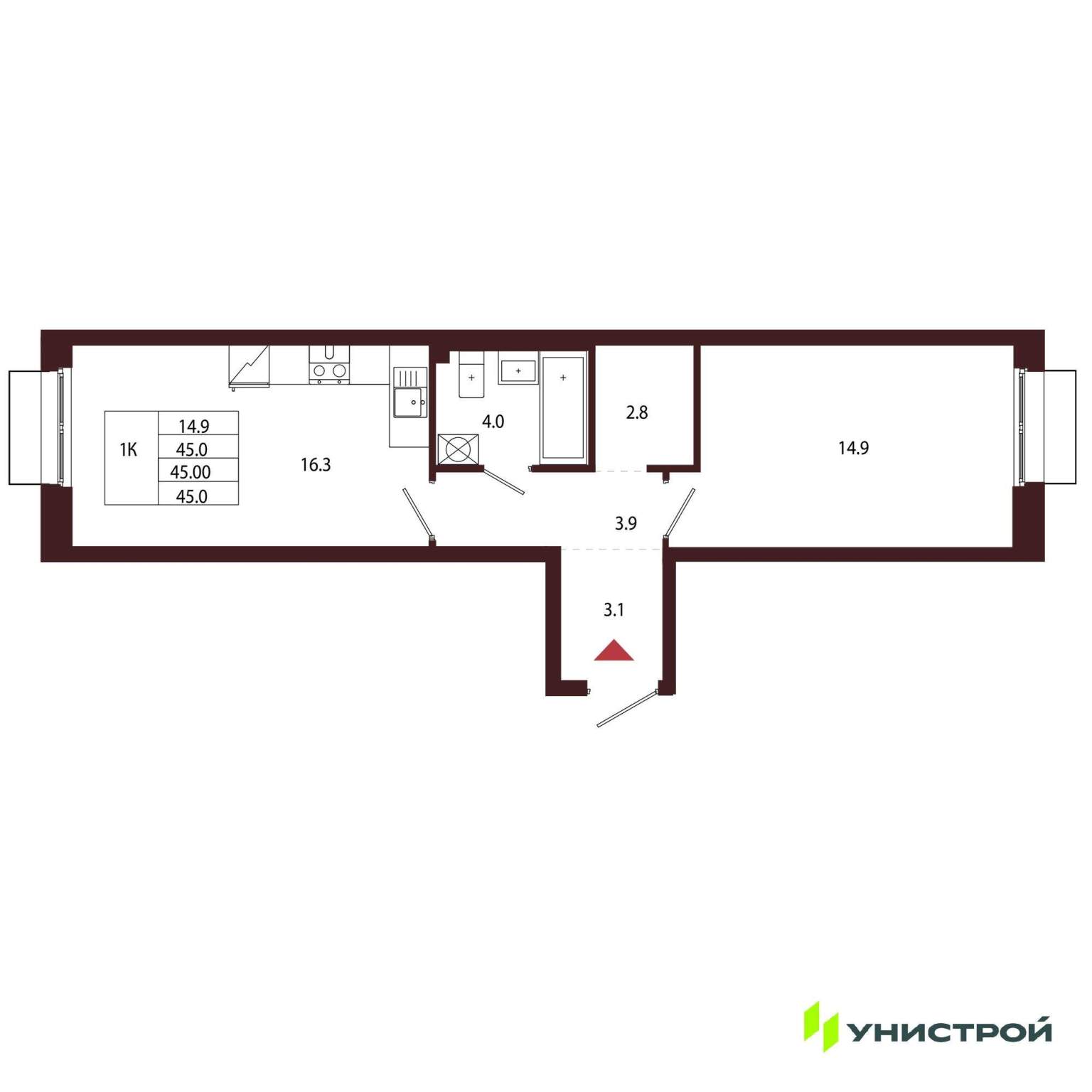 Однокомнатная квартира 45,00 м2 по ул. Сестрорецк Авиационная улица,1 за 14714000 руб. |