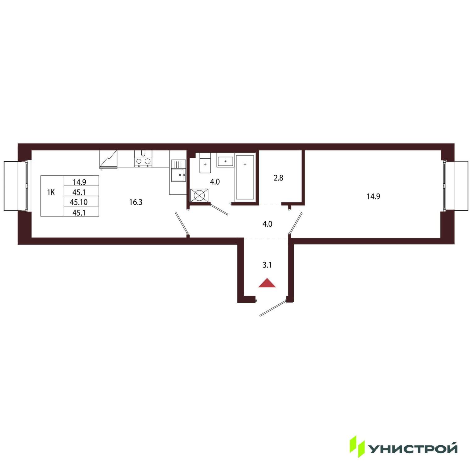 Однокомнатная квартира 45,10 м2 по ул. Сестрорецк Авиационная улица,1 за 14758000 руб. |