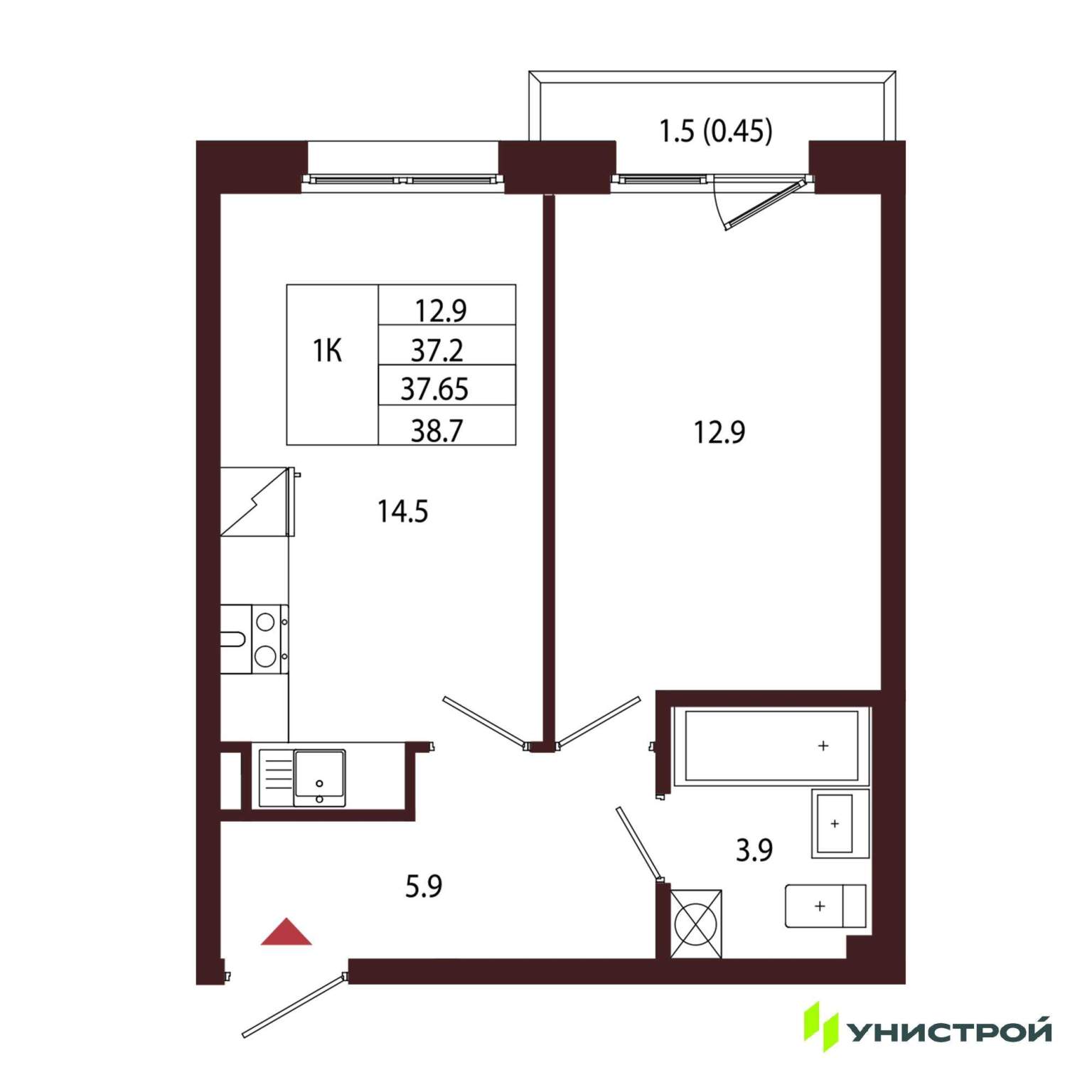 Однокомнатная квартира 37,65 м2 по ул. Сестрорецк Авиационная улица,1 за 12390000 руб. |