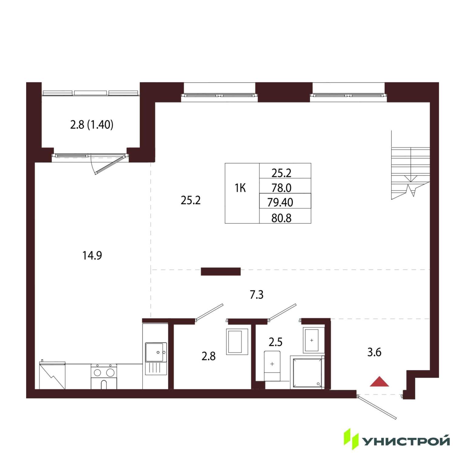 Однокомнатная квартира 79,40 м2 по ул. Сестрорецк Авиационная улица,1 за 26068000 руб. |