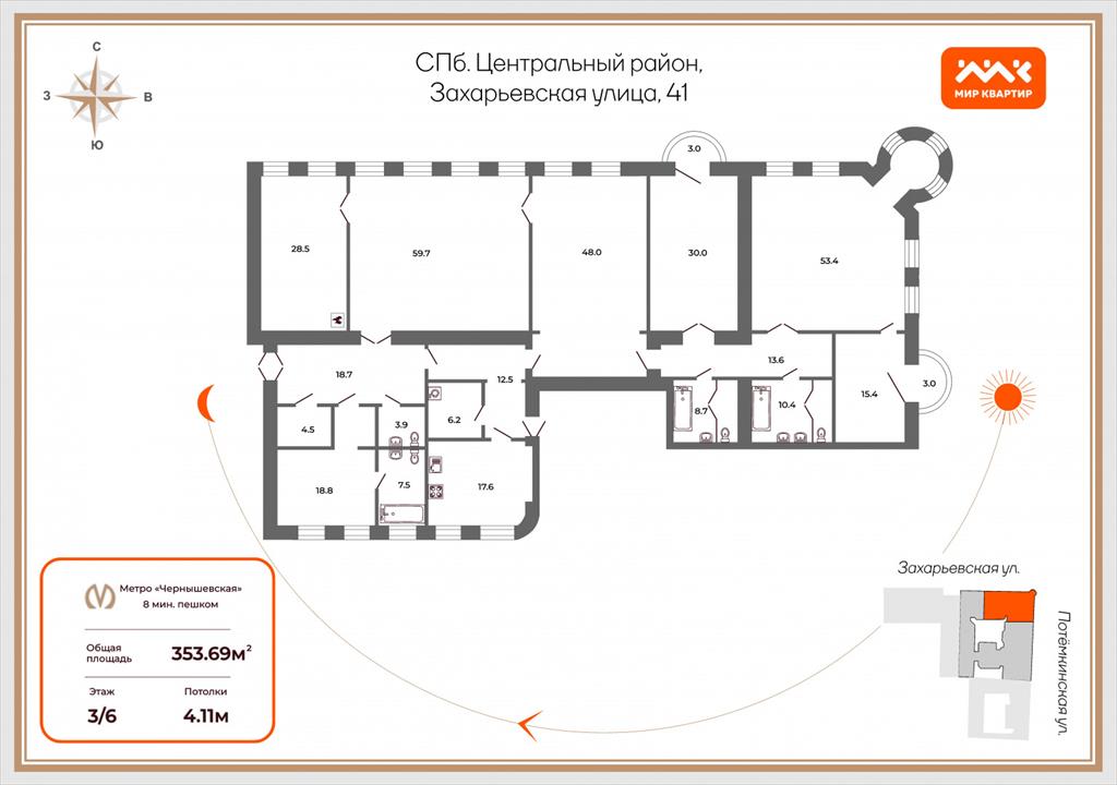 | Многокомнатная квартира по ул. Захарьевская, 41 литер А в Санкт-Петербурге |