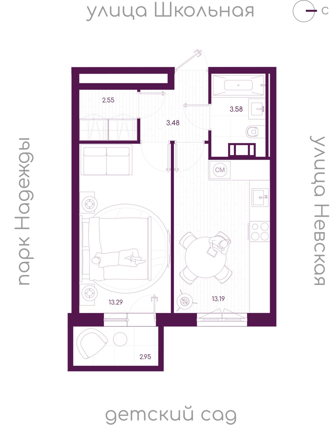 | Однокомнатная квартира по ул. Всеволожский район, городской поселок Дубровка, Школьная улица,2 в Санкт-Петербурге |