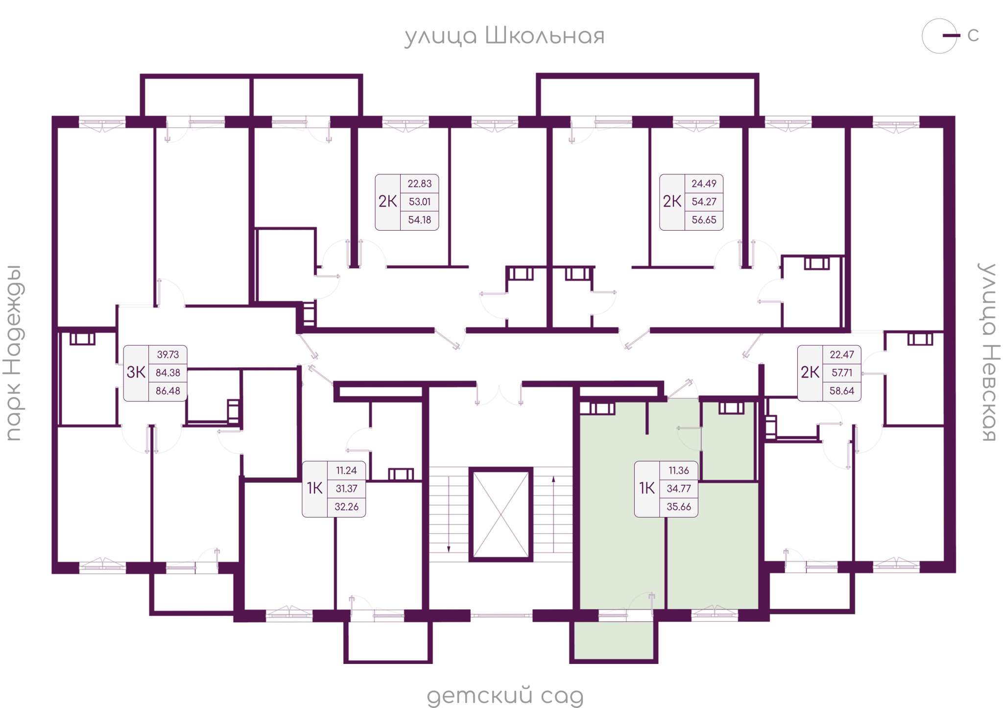 | Продаётся 1- комнатная квартира площадью 35,66 кв.м. на 2 этаже 5-этажного дома в ЖК «Дубровка. Park». Номер квартиры 70.