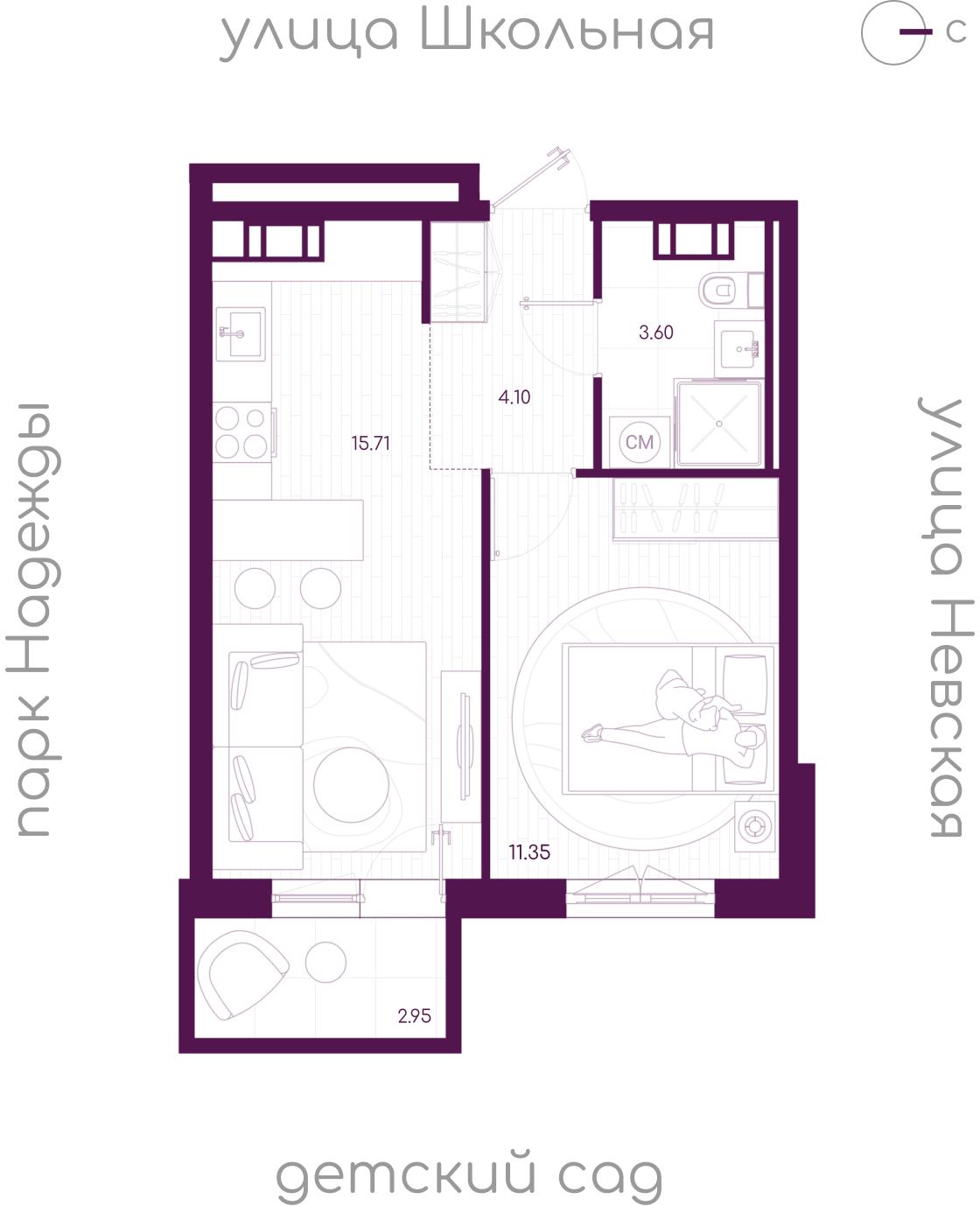 | Однокомнатная квартира по ул. Всеволожский район, городской поселок Дубровка, Школьная улица,2 в Санкт-Петербурге |