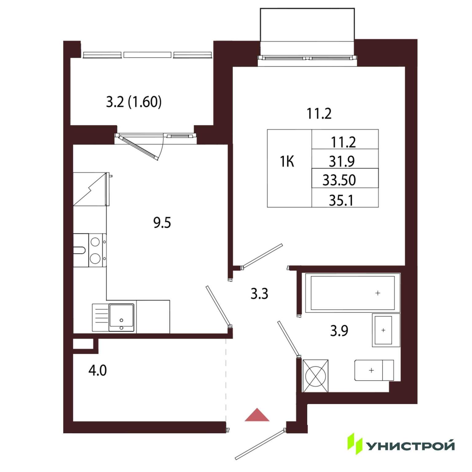 Однокомнатная квартира 33,50 м2 по ул. Сестрорецк Авиационная улица,1 за 11033000 руб. |