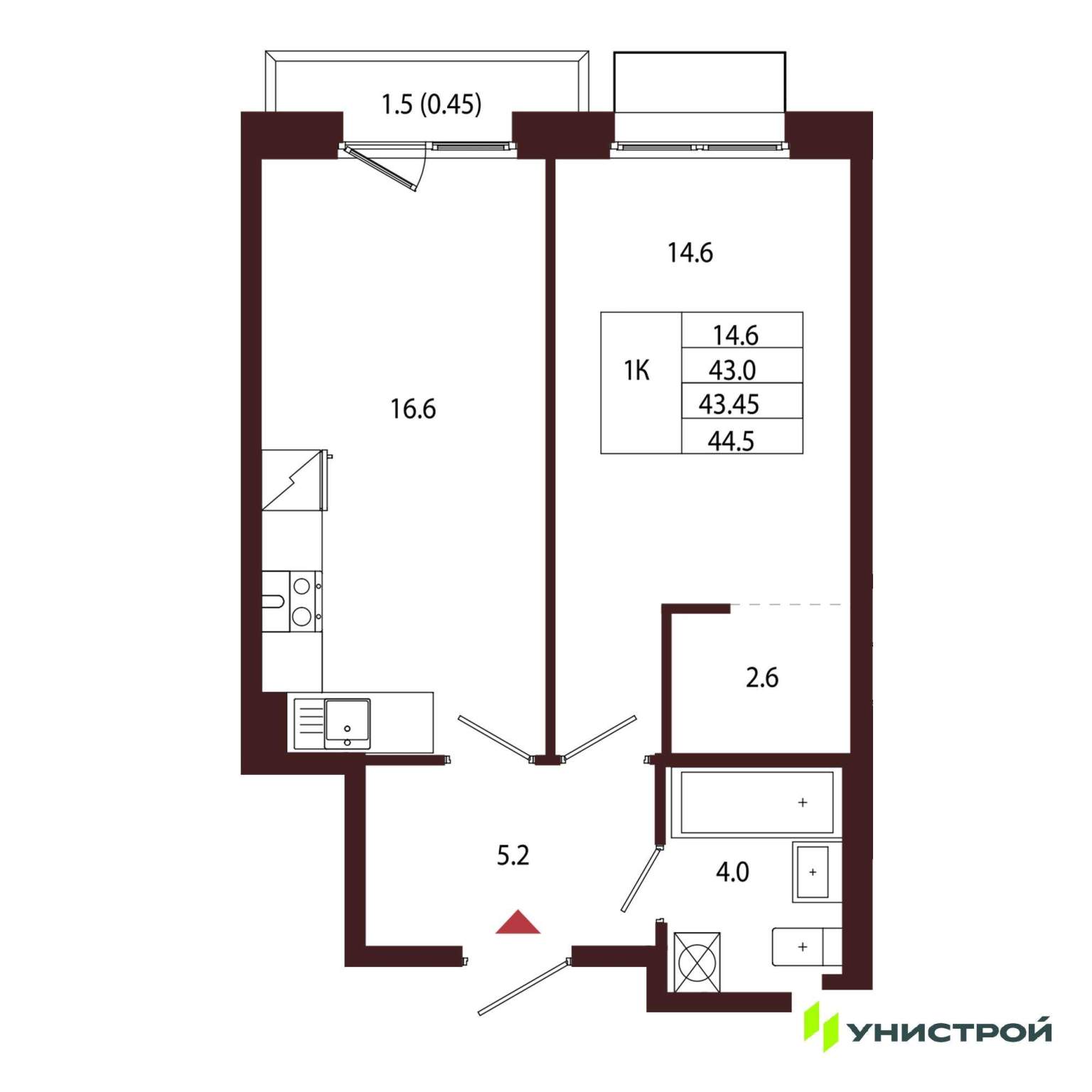 Однокомнатная квартира 43,45 м2 по ул. Сестрорецк Авиационная улица,1 за 14330000 руб. |