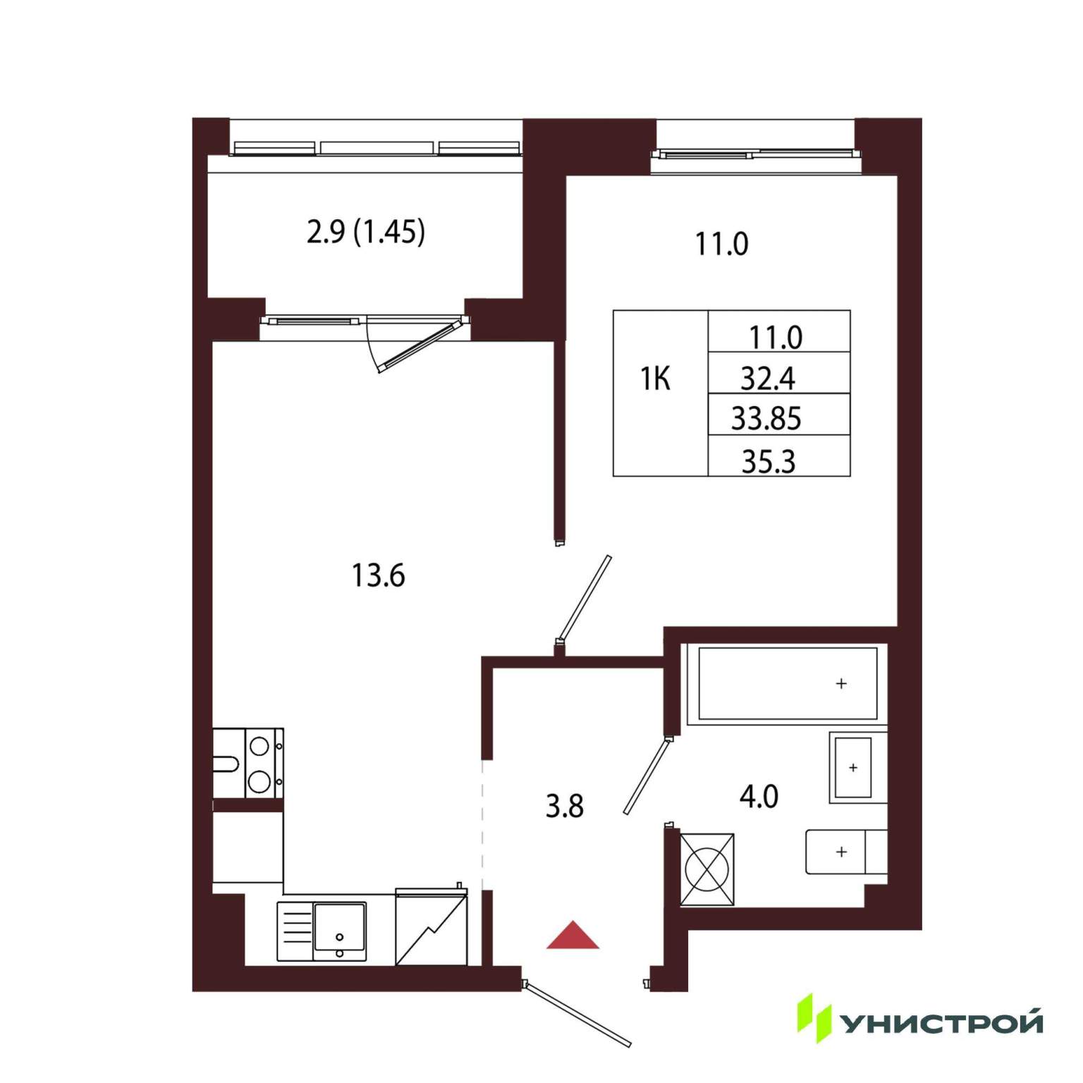 Однокомнатная квартира 33,85 м2 по ул. Сестрорецк Авиационная улица,1 за 10970000 руб. |