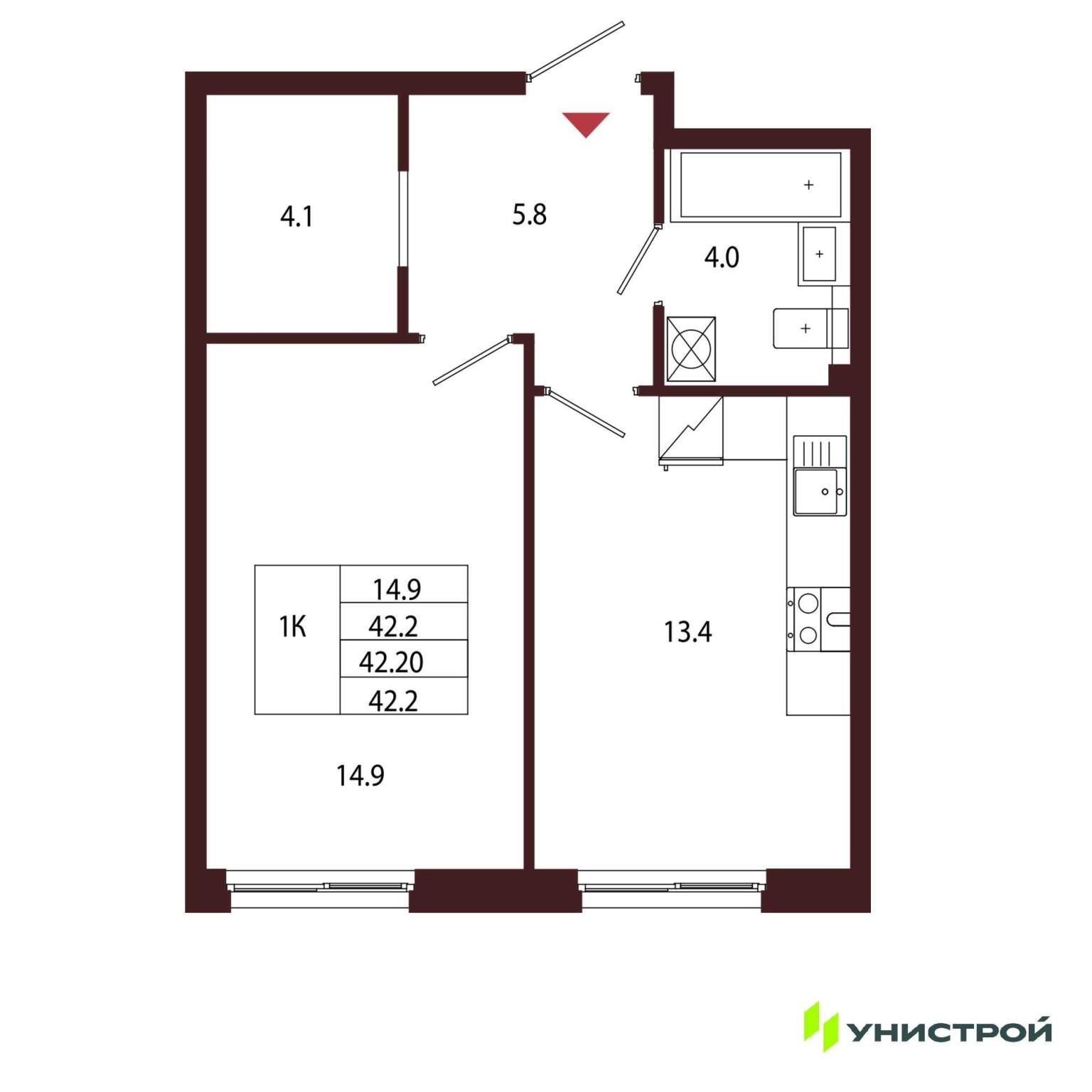 Однокомнатная квартира 42,20 м2 по ул. Сестрорецк Авиационная улица,1 за 13690000 руб. |