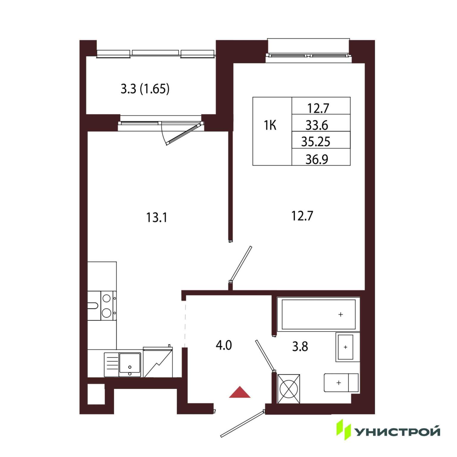 Однокомнатная квартира 35,25 м2 по ул. Сестрорецк Авиационная улица,1 за 11519000 руб. |
