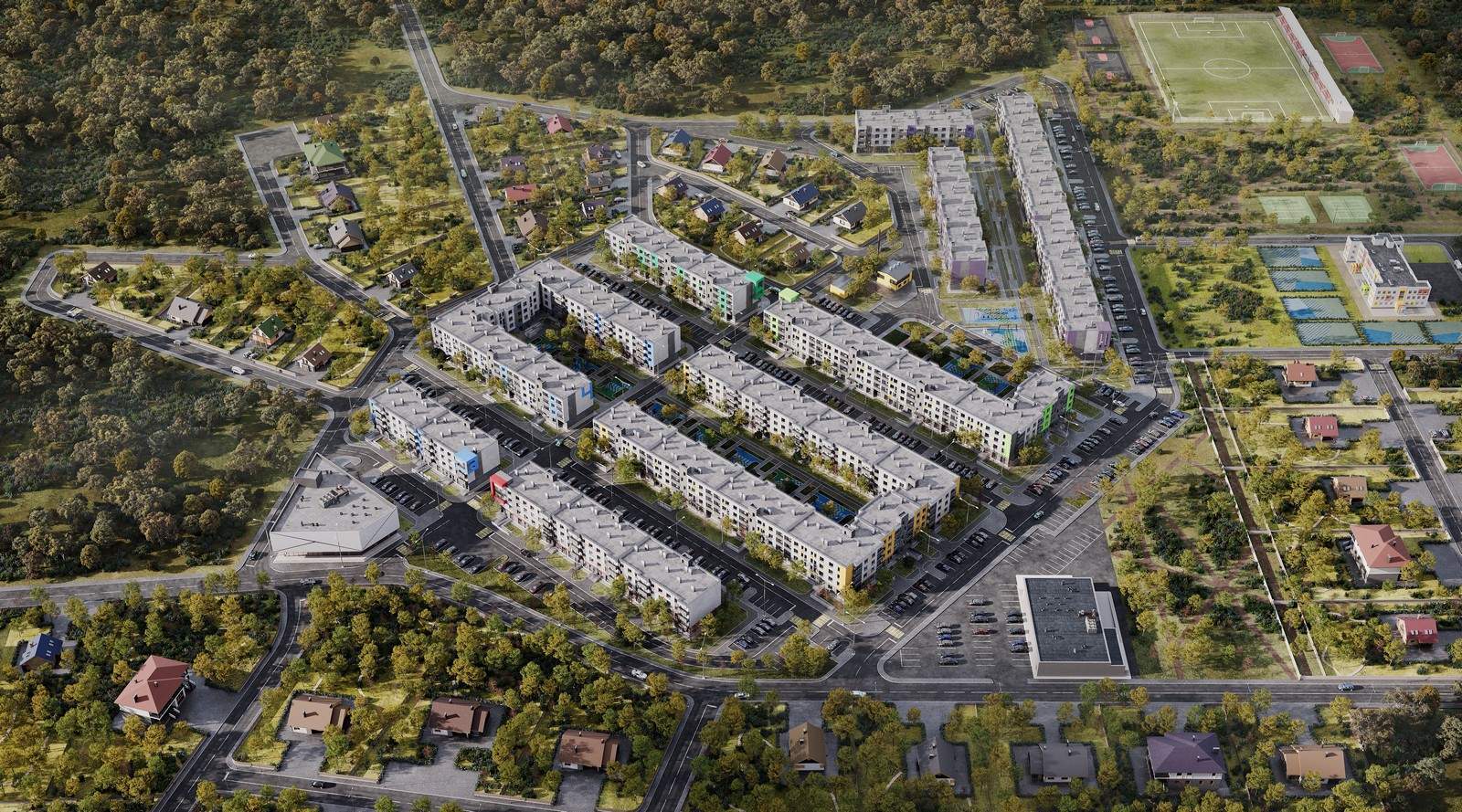 В 10-ти четырехэтажных корпусах сможет поселиться 1171 семья. Дома располагаются блоками, образуя уютные закрытые и безопасные дворы с большим количеством зеленых насаждений и с зонами отдыха для взрослых и детей.