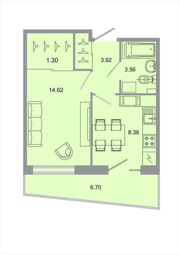 Жилая площадь 15.7 м2, кухня 8.2 м2, чистовая отделка, комнаты изолированные, балконов - 1.