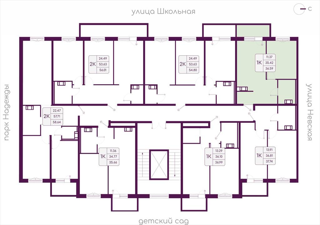 | Продаётся 1- комнатная квартира площадью 36,59 кв.м. на 4 этаже 5-этажного дома в ЖК «Дубровка. Park». Номер квартиры 52.