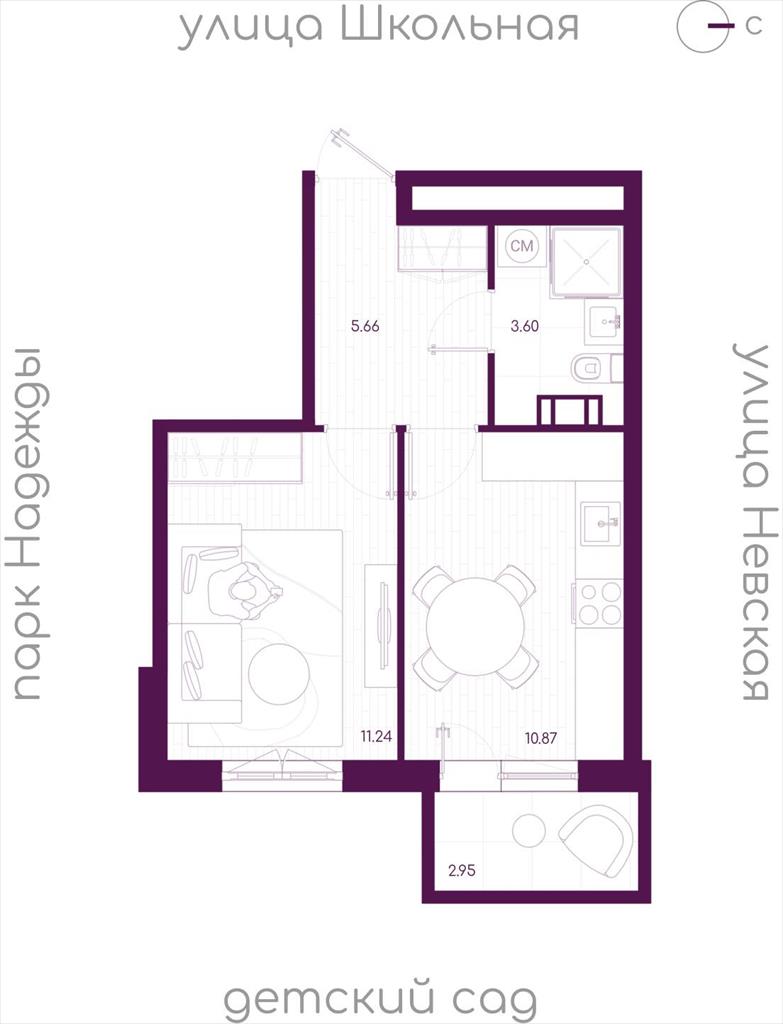 | Однокомнатная квартира по ул. Всеволожский район, городской поселок Дубровка, Школьная улица,2 в Санкт-Петербурге |