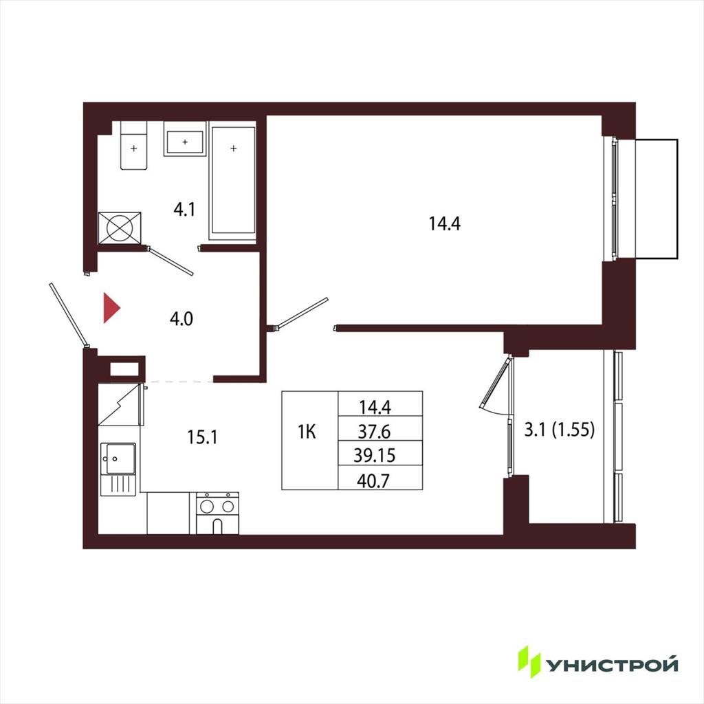 Однокомнатная квартира 39,15 м2 по ул. Сестрорецк Авиационная улица,1 за 12750000 руб. |