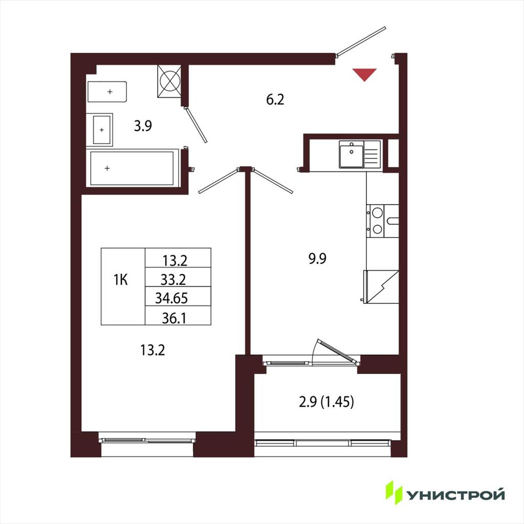 Однокомнатная квартира 34,65 м2 по ул. Сестрорецк Авиационная улица,1 за 11200000 руб. |