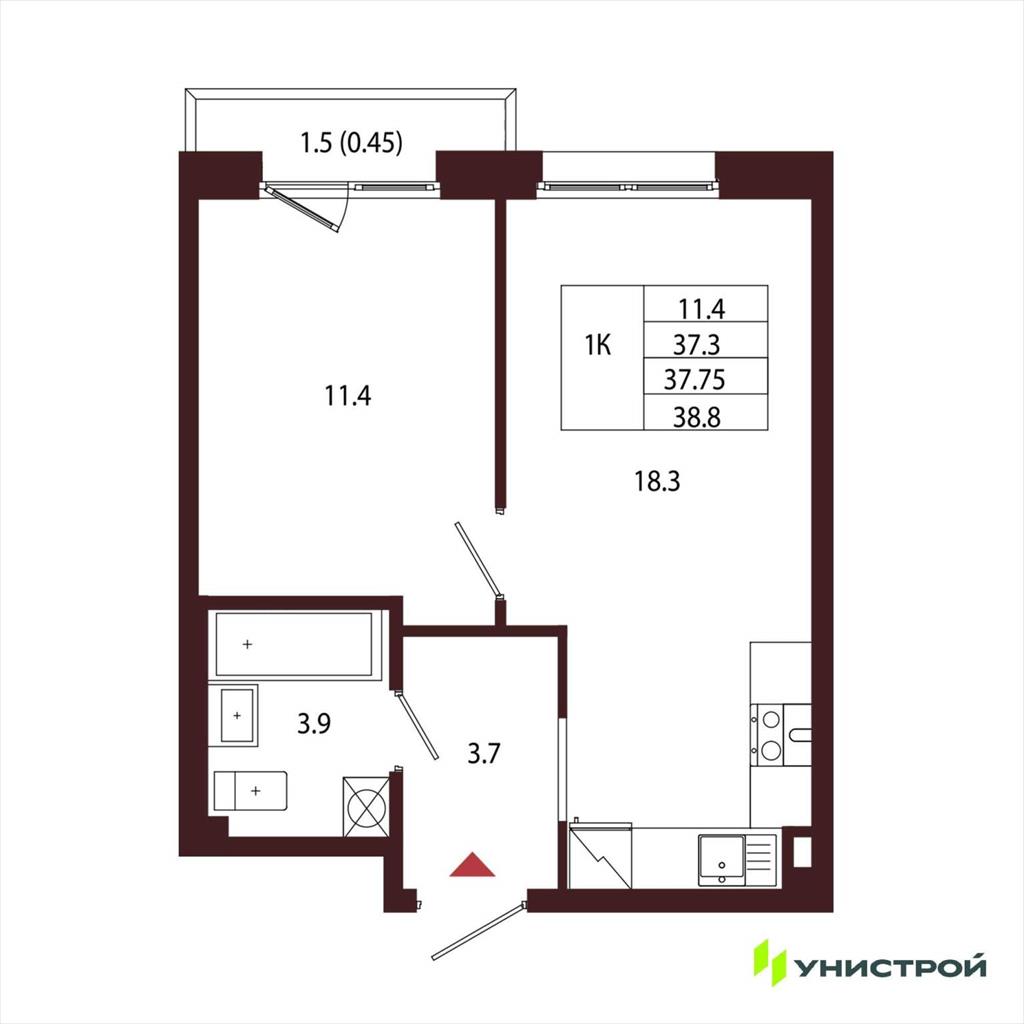Однокомнатная квартира 37,75 м2 по ул. Сестрорецк Авиационная улица,1 за 12430000 руб. |