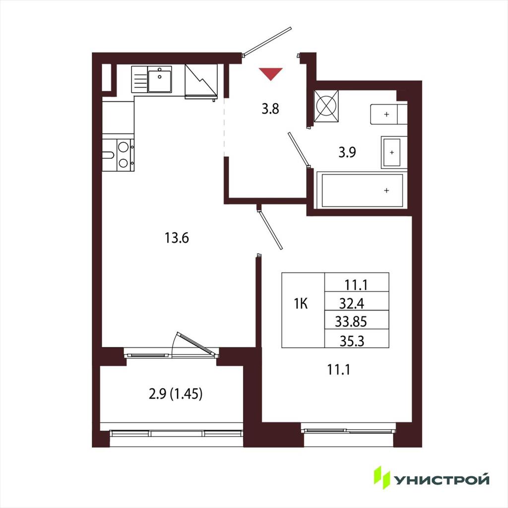 Однокомнатная квартира 33,85 м2 по ул. Сестрорецк Авиационная улица,1 за 10910000 руб. |