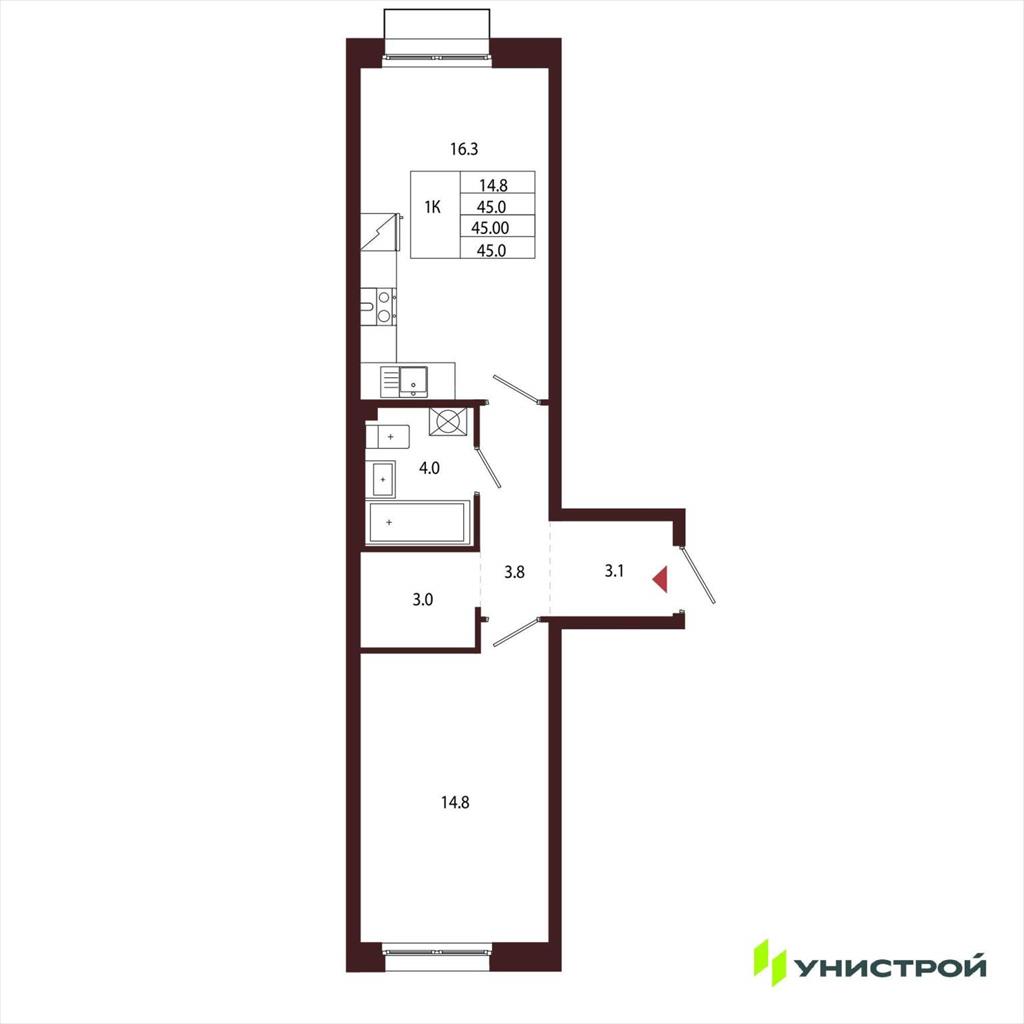 Однокомнатная квартира 45,00 м2 по ул. Сестрорецк Авиационная улица,1 за 14730000 руб. |
