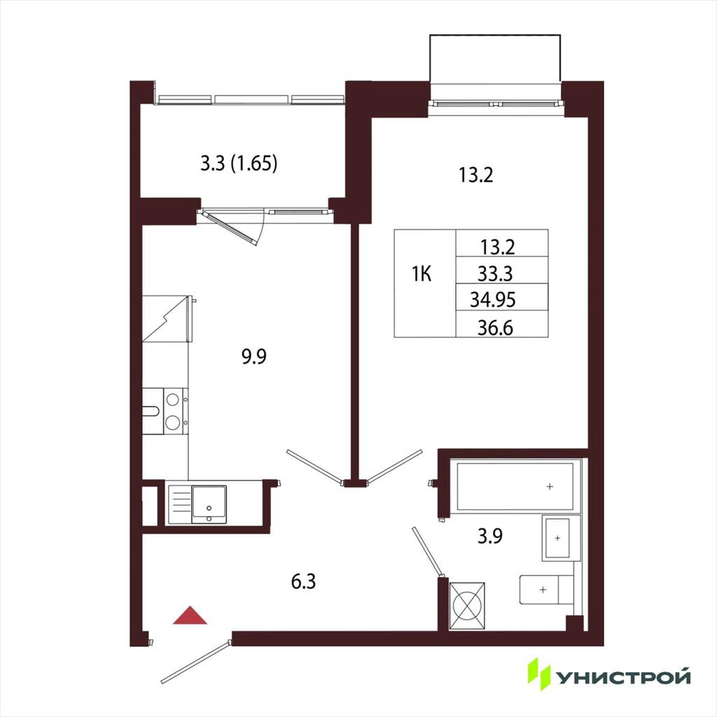 Однокомнатная квартира 34,95 м2 по ул. Сестрорецк Авиационная улица,1 за 11453000 руб. |