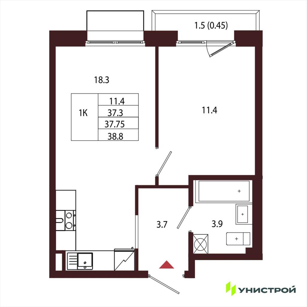 Однокомнатная квартира 37,75 м2 по ул. Сестрорецк Авиационная улица,1 за 12440000 руб. |