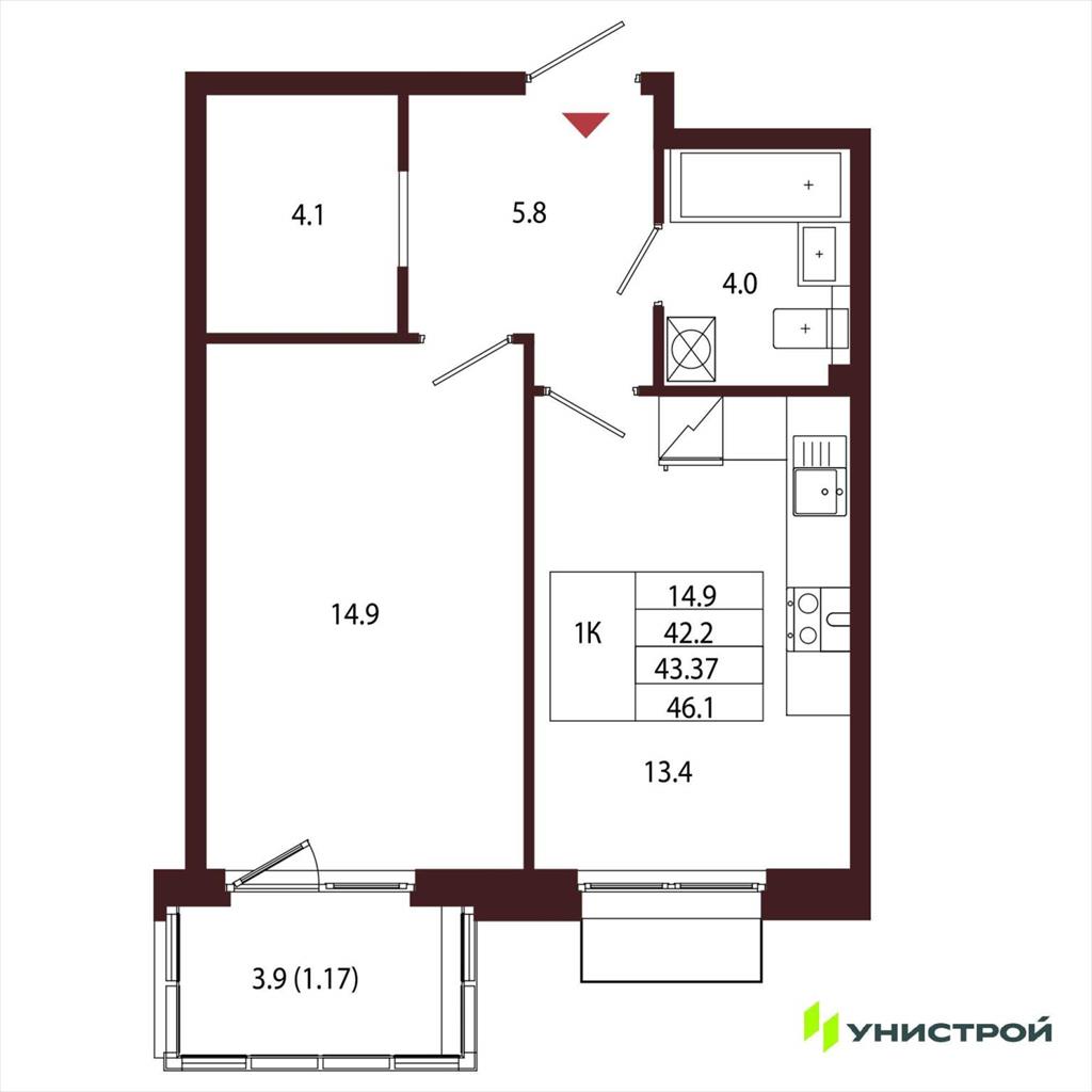 Однокомнатная квартира 43,37 м2 по ул. Сестрорецк Авиационная улица,1 за 14280000 руб. |
