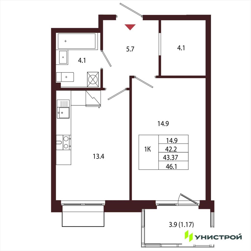 Однокомнатная квартира 43,37 м2 по ул. Сестрорецк Авиационная улица,1 за 14240000 руб. |