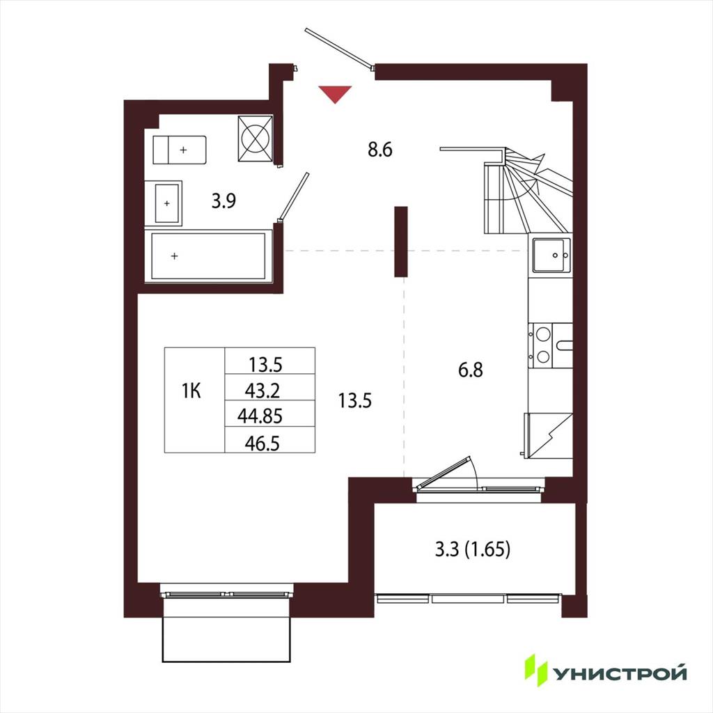 Однокомнатная квартира 44,85 м2 по ул. Сестрорецк Авиационная улица,1 за 14570000 руб. |