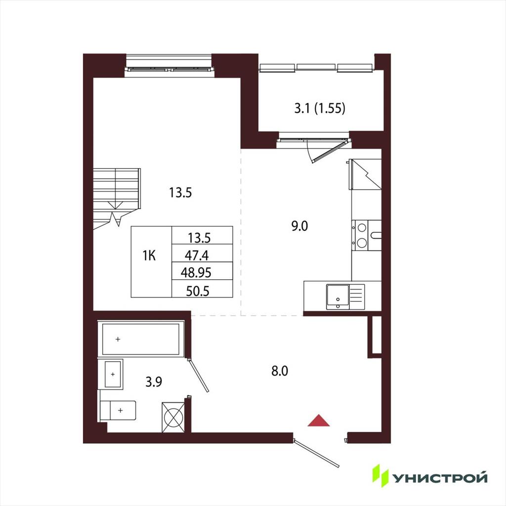 Однокомнатная квартира 48,95 м2 по ул. Сестрорецк Авиационная улица,1 за 15997000 руб. |