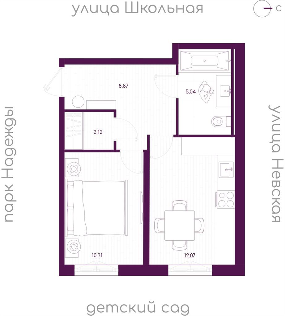 общая 38,41 м2, жилая 12,07 м2, кухни 10,31 м2 |