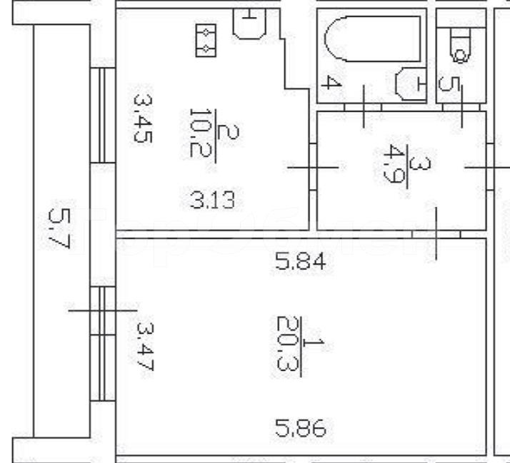 общая 39 м2, жилая 20,3 м2, кухни 10,2 м2 |