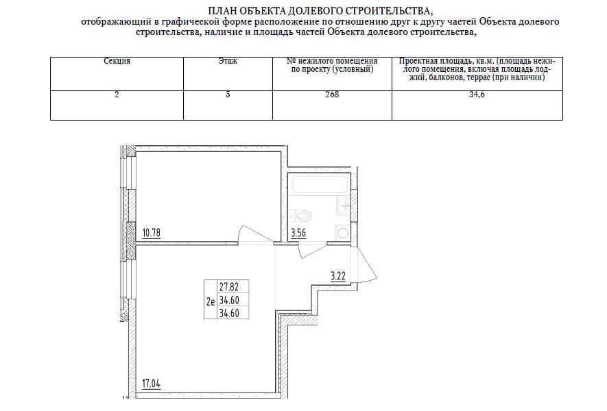 общая 34,6 м2, жилая 10,78 м2, кухни 17,04 м2 |