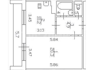 общая 39 м2, жилая 20,3 м2, кухни 10,2 м2 |