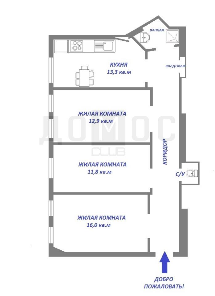 | Трехкомнатная квартира по ул. ул. Ропшинская, 19 в Санкт-Петербурге |
