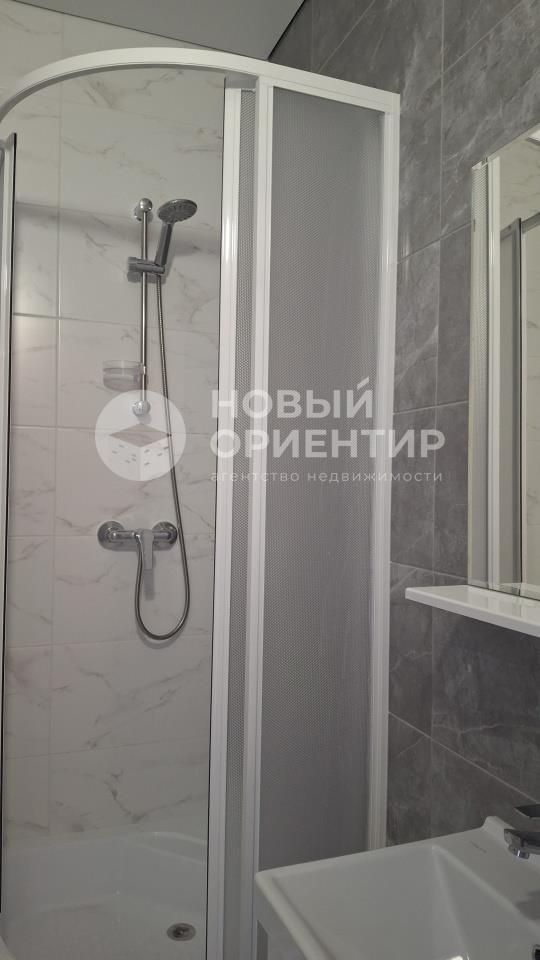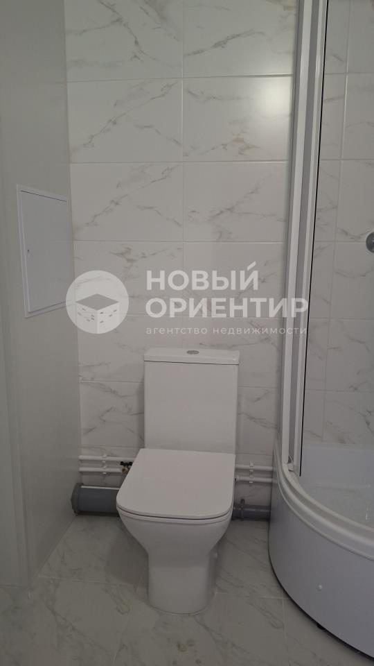 <p >Полностью готовый санузел: кафель до потолка, душевая кабина, унитаз, раковина, зеркало, шкафчик</p>