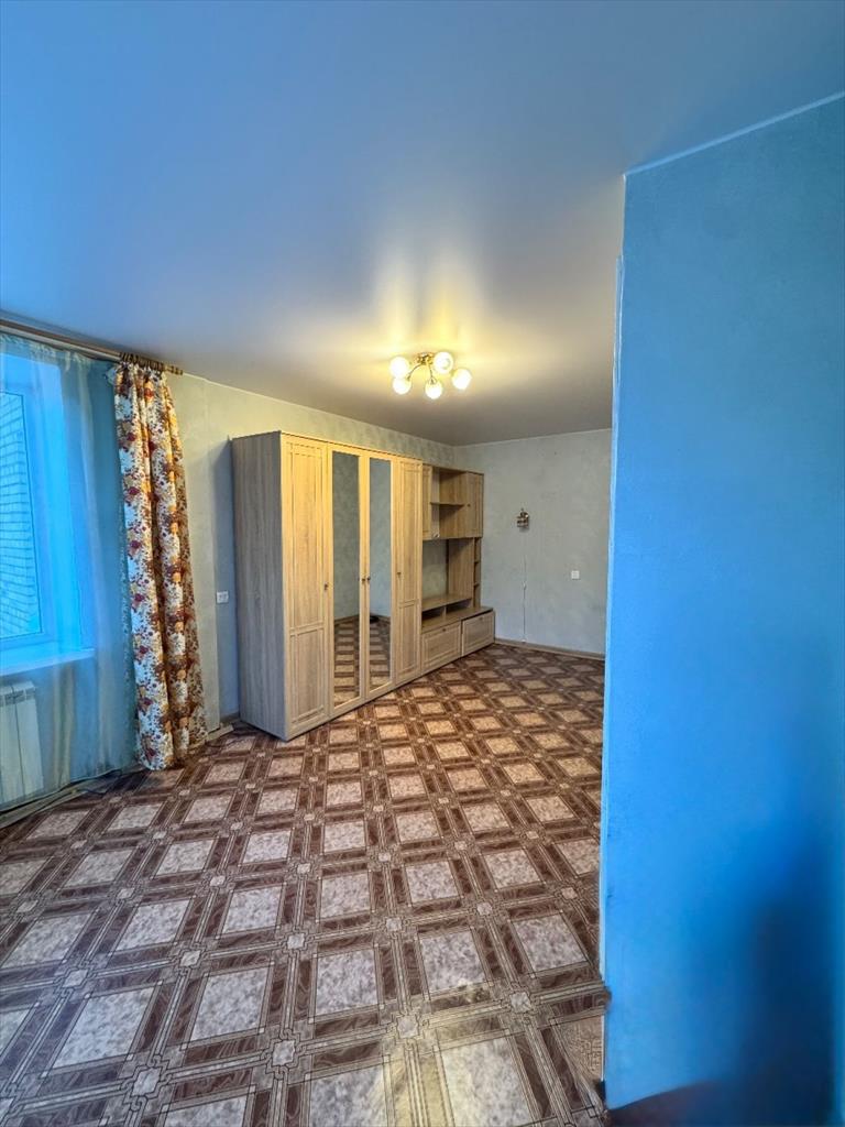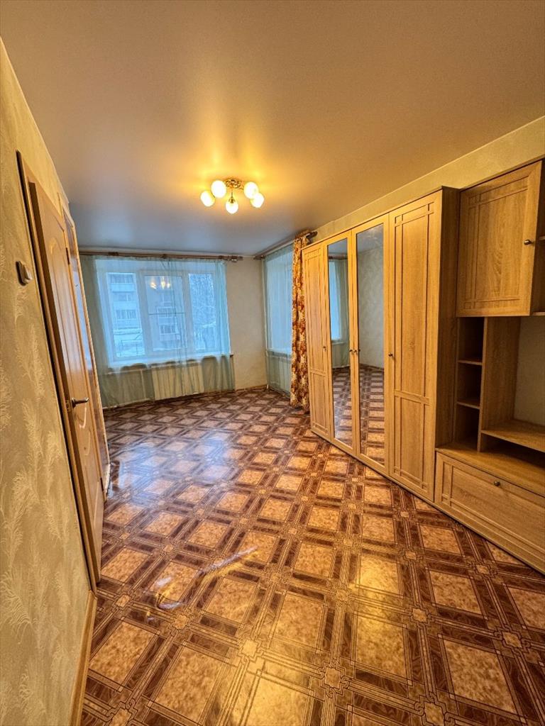 Просторная комната: Планировка позволяет легко зонировать пространство — обустроить детский уголок, рабочий кабинет или зону отдыха. Имеется встроенный шкаф.