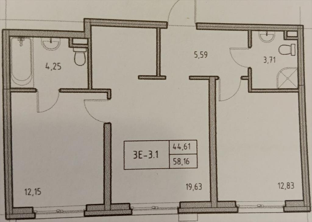 Двухкомнатная квартира 58,16 м2 по ул. Октябрьская наб 40 за 11100000 руб. |