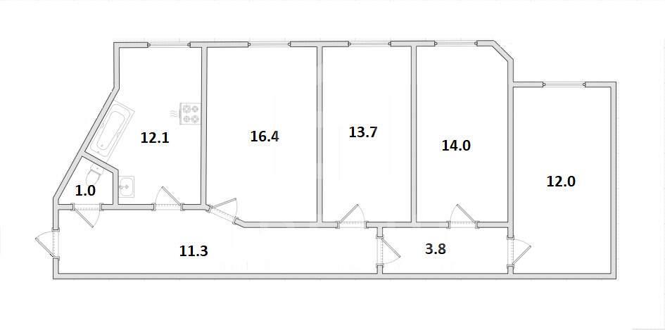 общая 84,3 м2, жилая 56,1 м2, кухни 12,1 м2 |