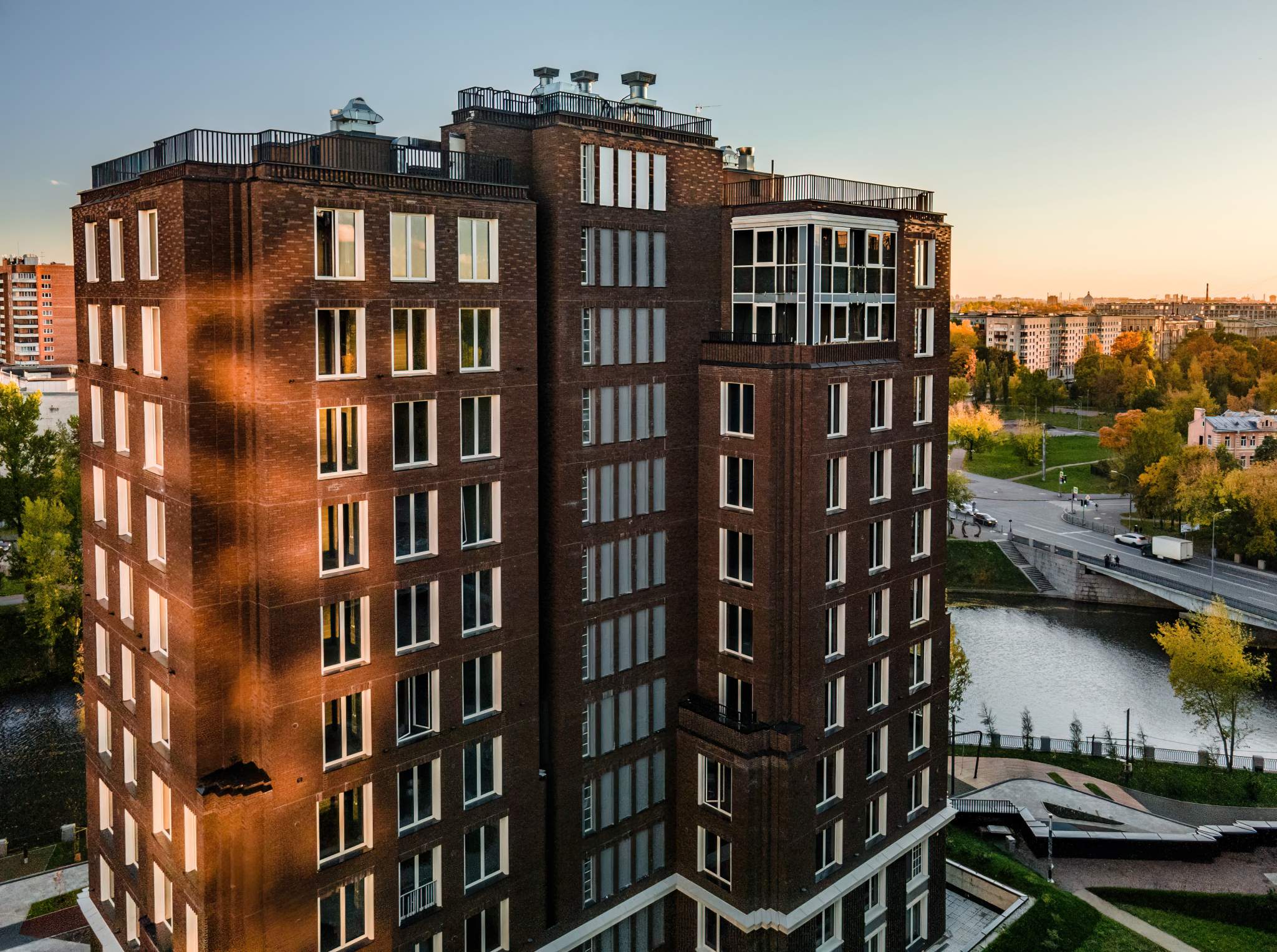 Свой Extra-подход AAG реализовал в ALTER через тщательно подобранную локацию, уступы террас и кирпичные фасады из клинкерного кирпича цвета кофейного зерна, панорамные окна с карнизами и стильной расстекловкой и команду лучших авторов: