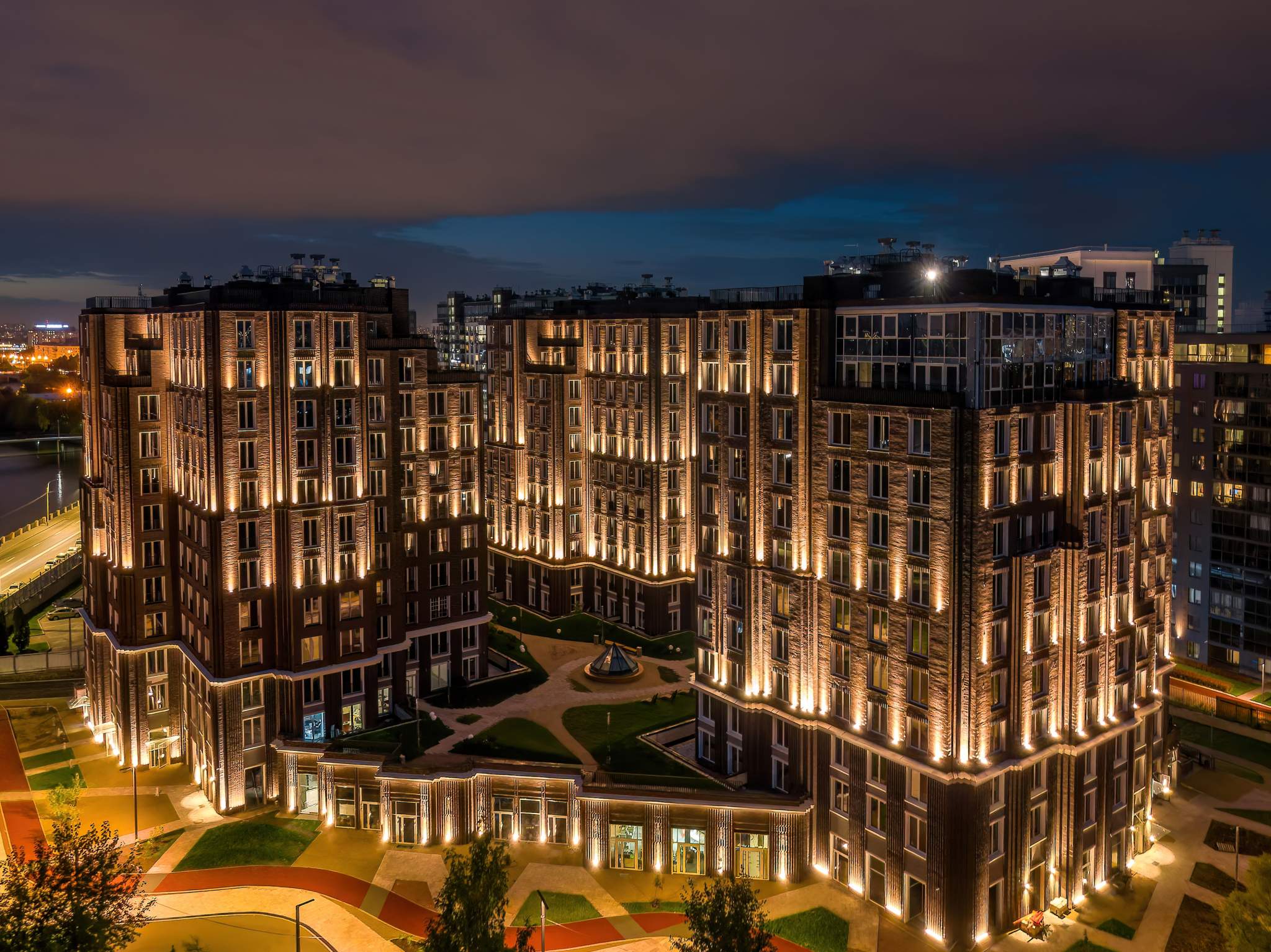 Крыши, внутренний двор, набережная и прилегающие территории образуют цельную эко среду, наполненную атмосферой добрососедства, комфортную и для размеренного отдыха в кругу семьи, и для динамичной жизни: