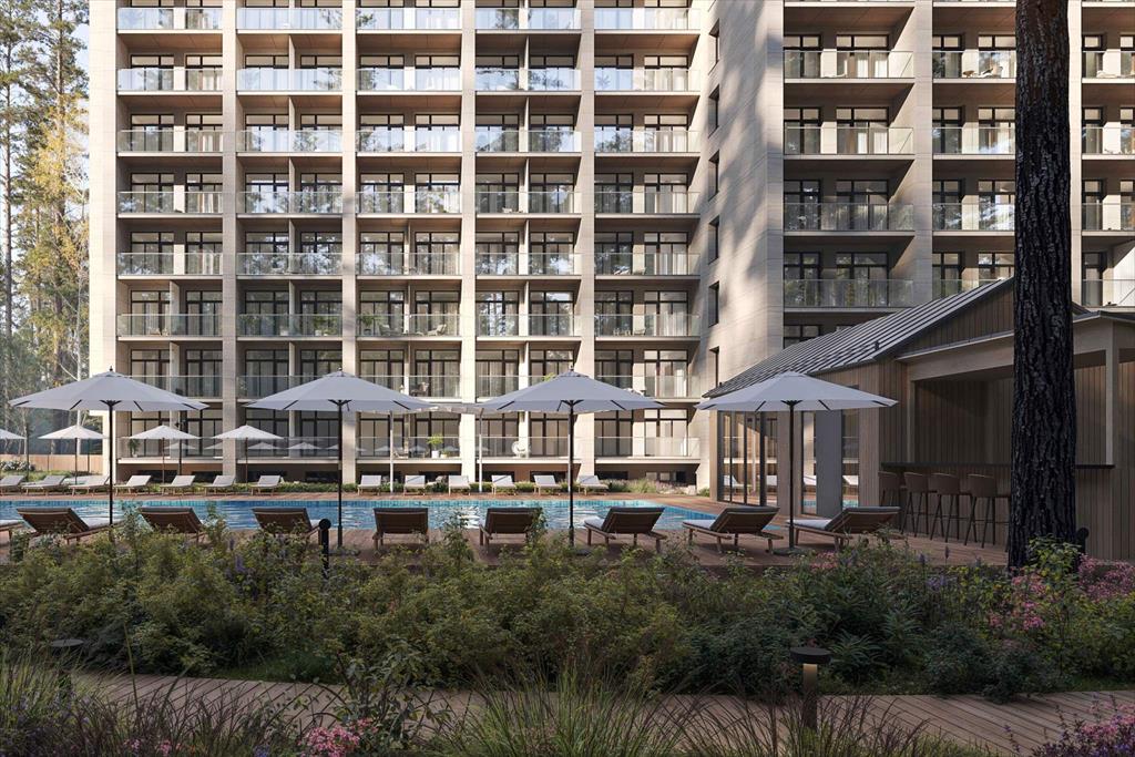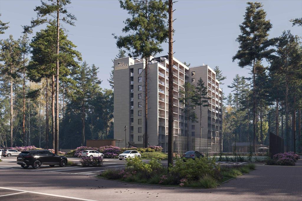 В комплексе всего 13 этажей. Из окон открывается завораживающий вид на Финский залив и многовековой лесной массив.