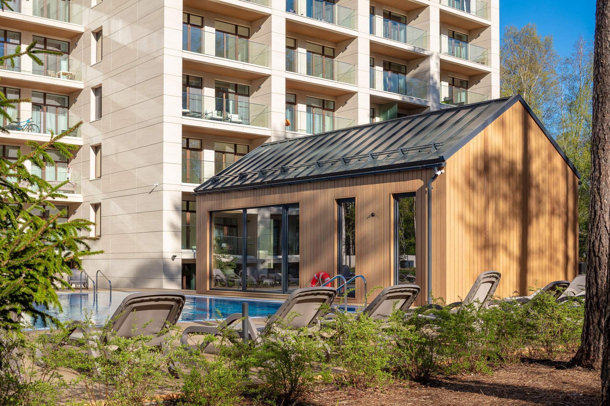 - подогреваемый открытый бассейн 25 м - работает круглый год, хотите - плавайте по дорожкам, тренируясь в своем темпе, хотите - просто отдыхайте в теплой воде, наслаждаясь видом на сосны и свежим воздухом;